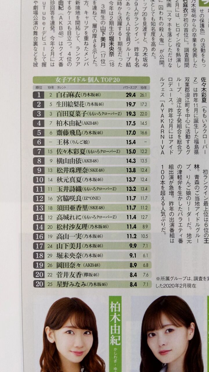 ランキングの一部はまだごり押しもありそうだけどね白石さんはさすが別格すぎw