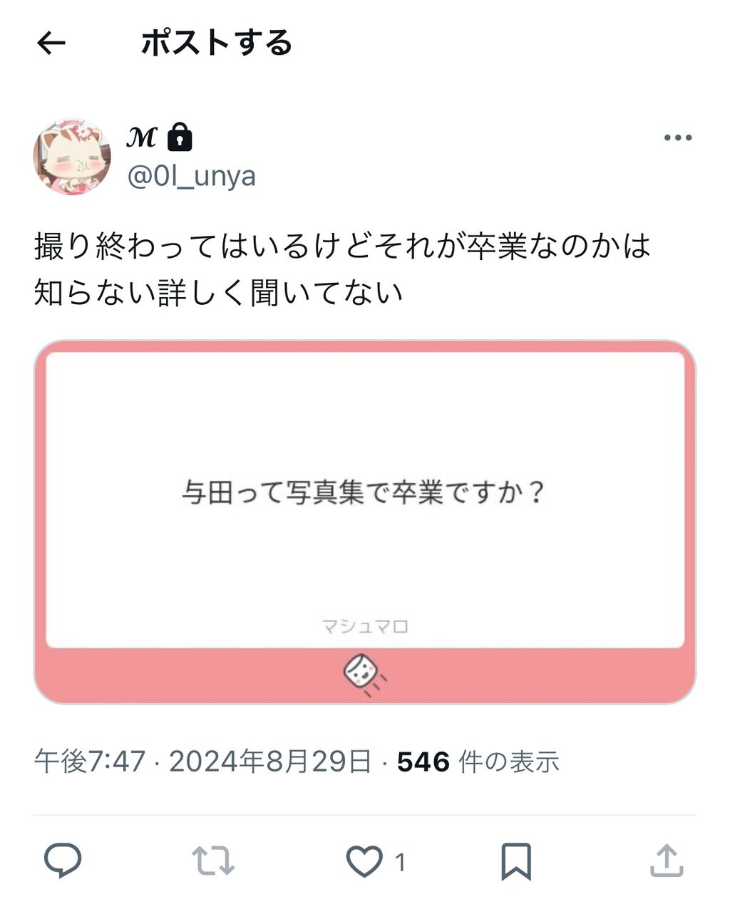 トラマガは8月27日の時点で発表されてるからMの写真集ツイートは別件だぞ