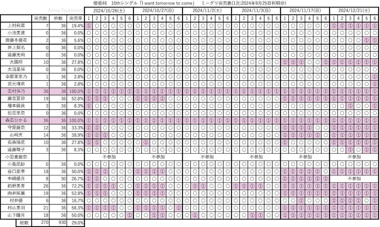 普通に考えれば、1部を完売する枚数と思うのだけれど、櫻と日向のミーグリはどちらも1部60分と同じだから、1部当たりの完売枚数は変わらないと思うのだが、違う意味なのかな?