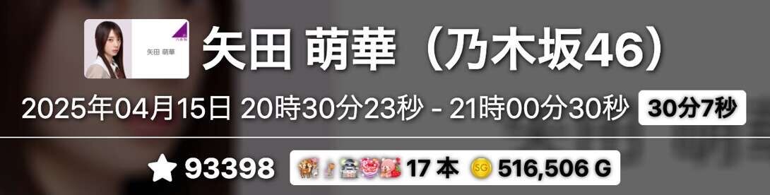 30分でタワー17本ギフト50万超えは凄いな