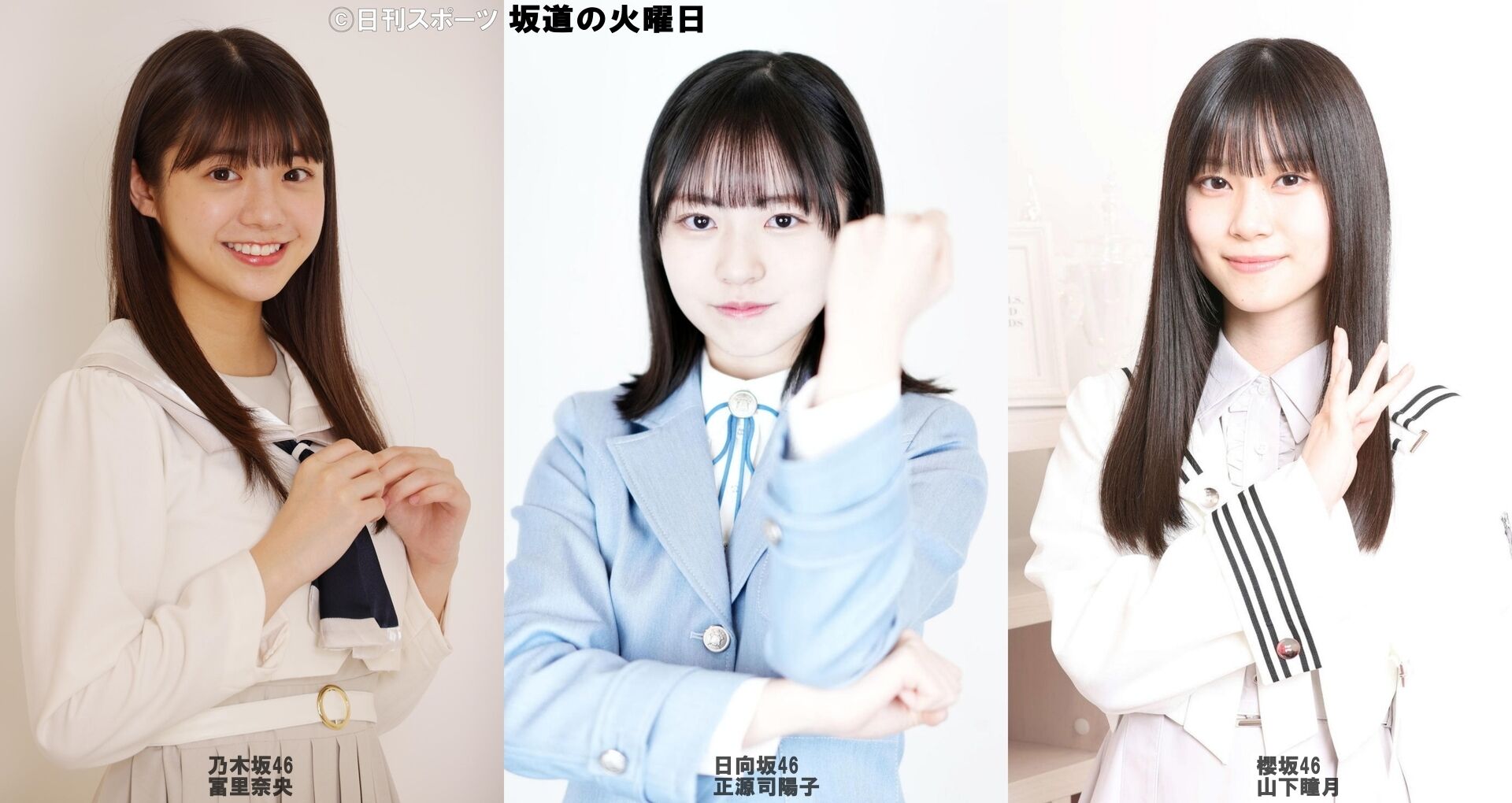 冨里奈央(乃木坂46)、正源司陽子(日向坂46)、山下瞳月(櫻坂46)