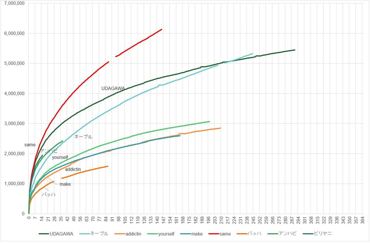 どっかの坂みたいに1週間無理矢理回してその後ほとんど伸びないっていうのは曲自体にはあまり魅力が無い証拠