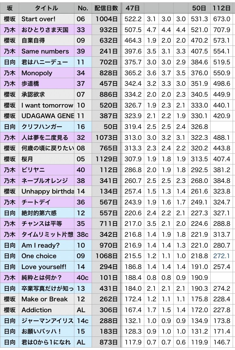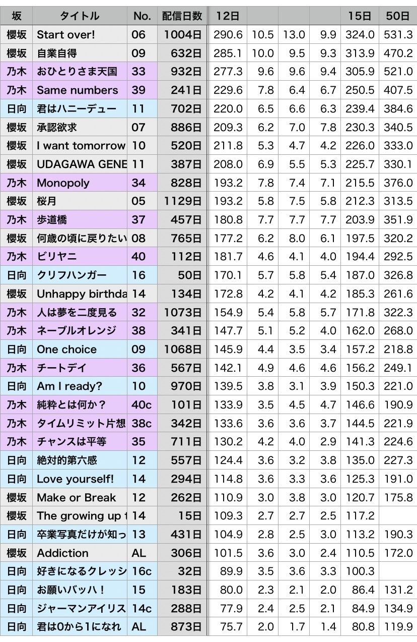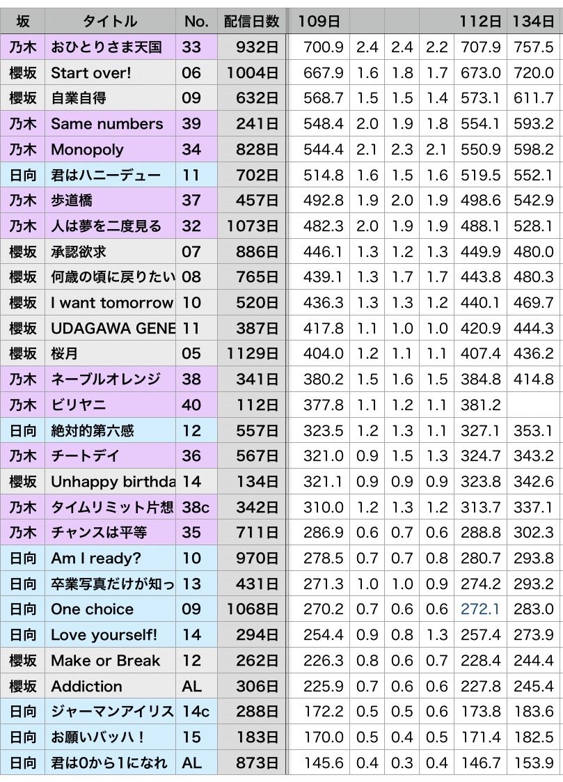乃木坂は1億のストリーミング認定2曲あるんだな~